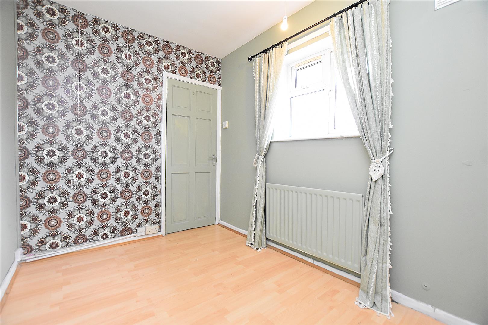 A good sized double bedroom with upvc double glazed window overlooking the rear garden, radiator, picture rail, wood effect laminate flooring and built-in storage cupboard housing the gas combination boiler.