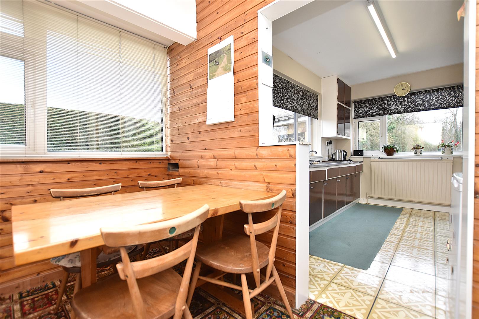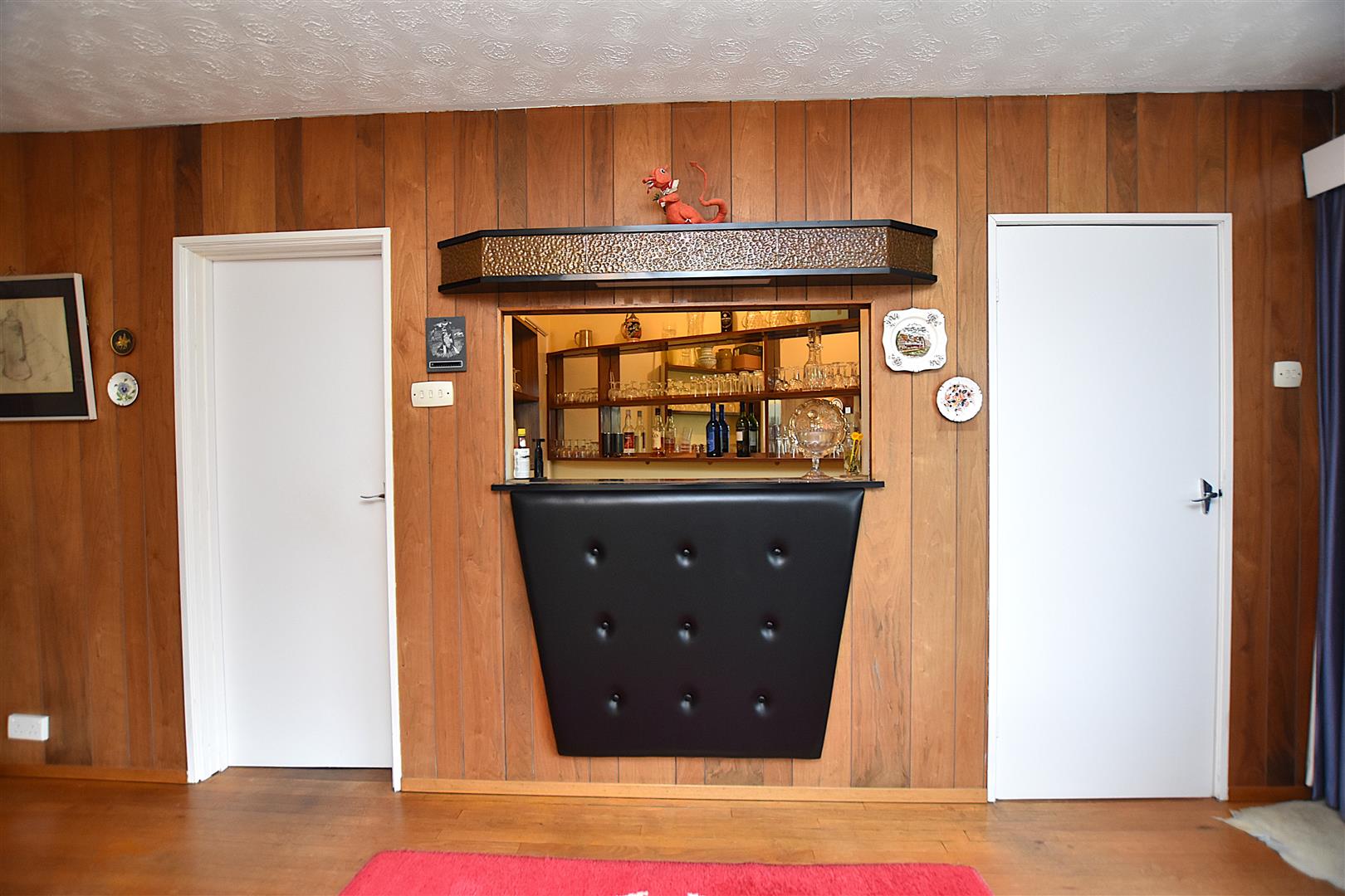 A spacious light and airy reception room having two upvc double glazed windows overlooking the side garden and almost full width upvc double glazed window providing a lovely aspect, double glazed door opening onto the veranda having timber balustrade and views over the garden ,wood flooring, three radiators, open fire and a bar servery with radiator.