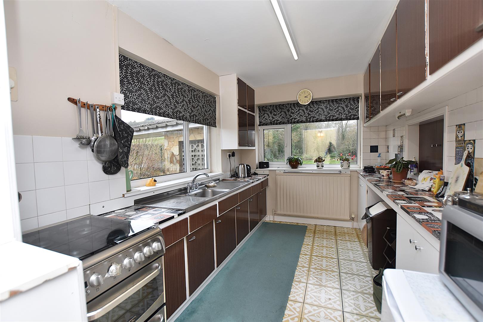 Having a dual aspect with upvc double glazed windows to front and side, fitted base and wall cupboards, work surface areas, stainless steel twin drainer sink unit, two radiators, breakfast bar and part tiled walls.