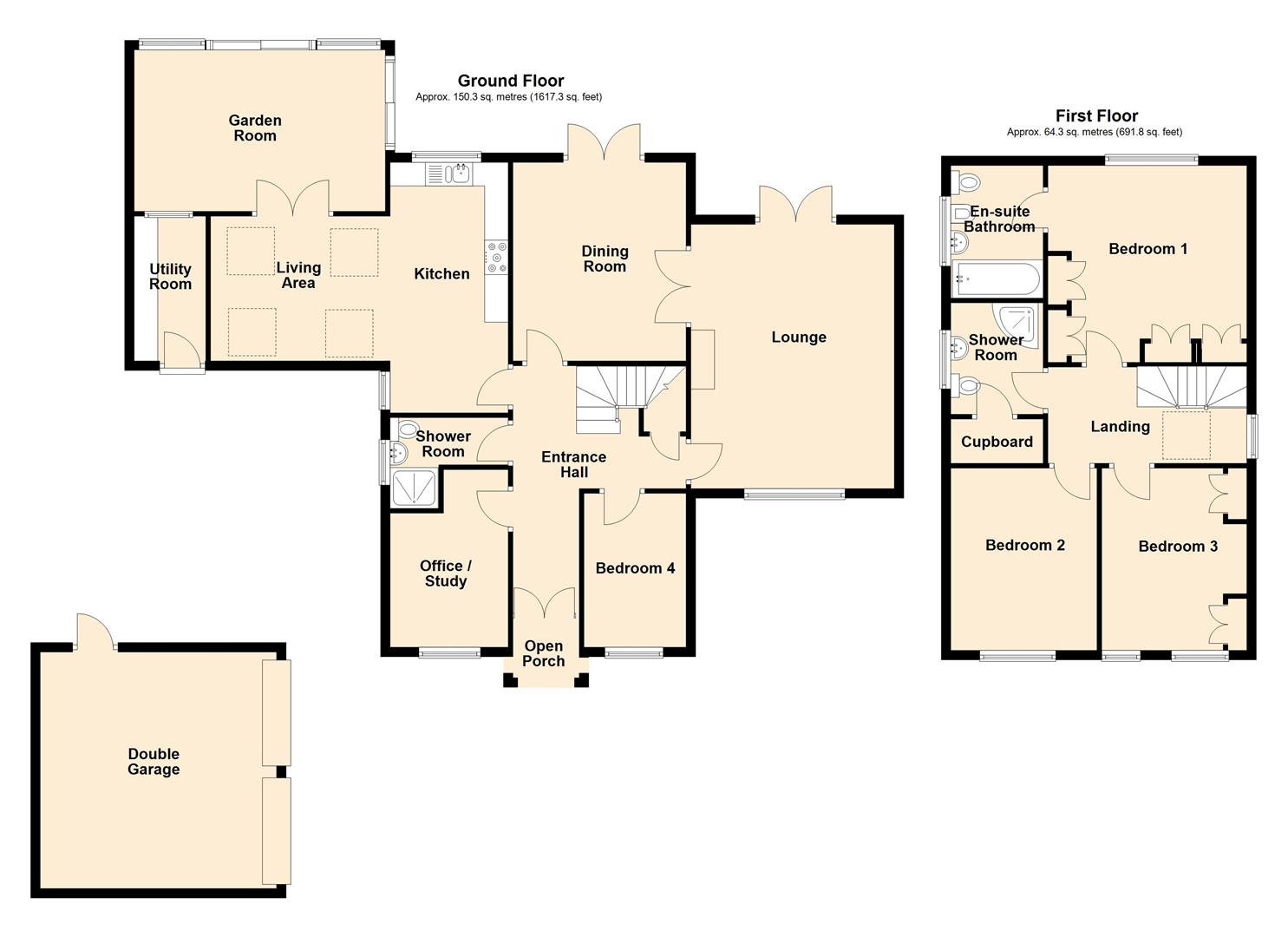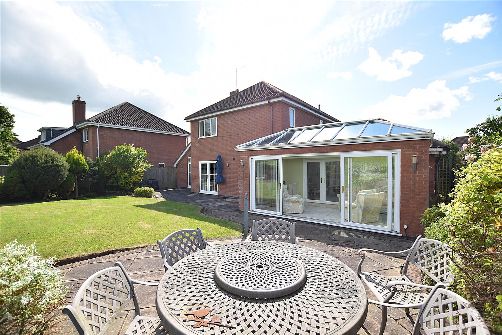 A beautifully presented and extended 4 double bedroom detached family home with double garage enjoying lovely countryside views to the rear located within this prestigious development on the fringe of the pretty village of Bangor On Dee with its convenient range of amenities, pubs and primary school yet within commuting distance of Wrexham, Chester and Shropshire. Designed to take full advantage of the views, the light and airy accommodation briefly comprises an open fronted pillared porch, welcoming hall with turned staircase and galleried landing overlooking the lounge, well appointed open plan kitchen/breakfast/living area which leads out to a private courtyard style patio and a garden room from where to admire the peaceful setting. Spacious lounge with French doors and raised ceiling, double doors open to a formal dining room for entertaining and family gatherings, home office, ground floor double bedroom complimented by a recently appointed shower room. The 1st floor landing connects the 3 further double bedrooms, the principal bedroom having an en-suite bathroom, and a family shower room. The property benefits from Cat6 Local Area Network. To the outside, a private drive provides ample parking and leads to the detached double garage with the ease of electric doors. The private rear garden is a particular feature adjoining countryside and offering outdoor entertaining space for children and adults with its stone paved patio areas, lawn, flower beds and garden shed. NO CHAIN. Energy Rating – C (70)