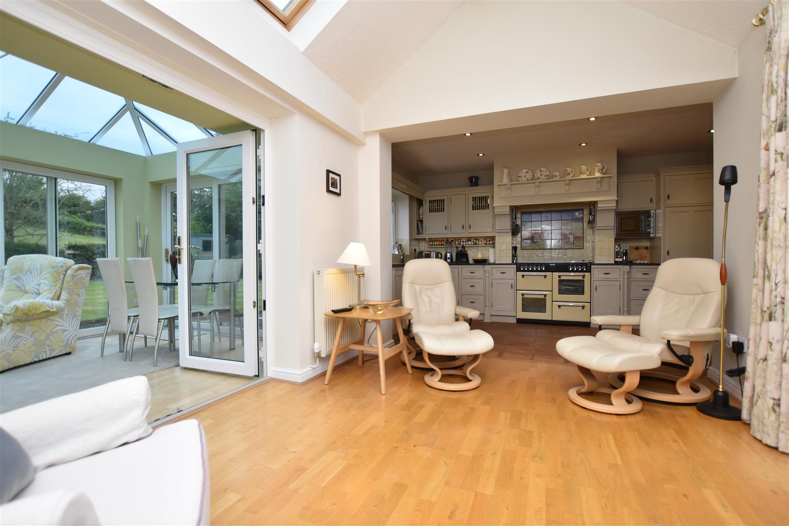 An excellent addition to this family home enjoying lovely views across the garden to open countryside, upvc double glazed sliding patio doors to both side and rear, glass roof with two opening windows, remote operated gas fire on hearth and pelmet lighting.