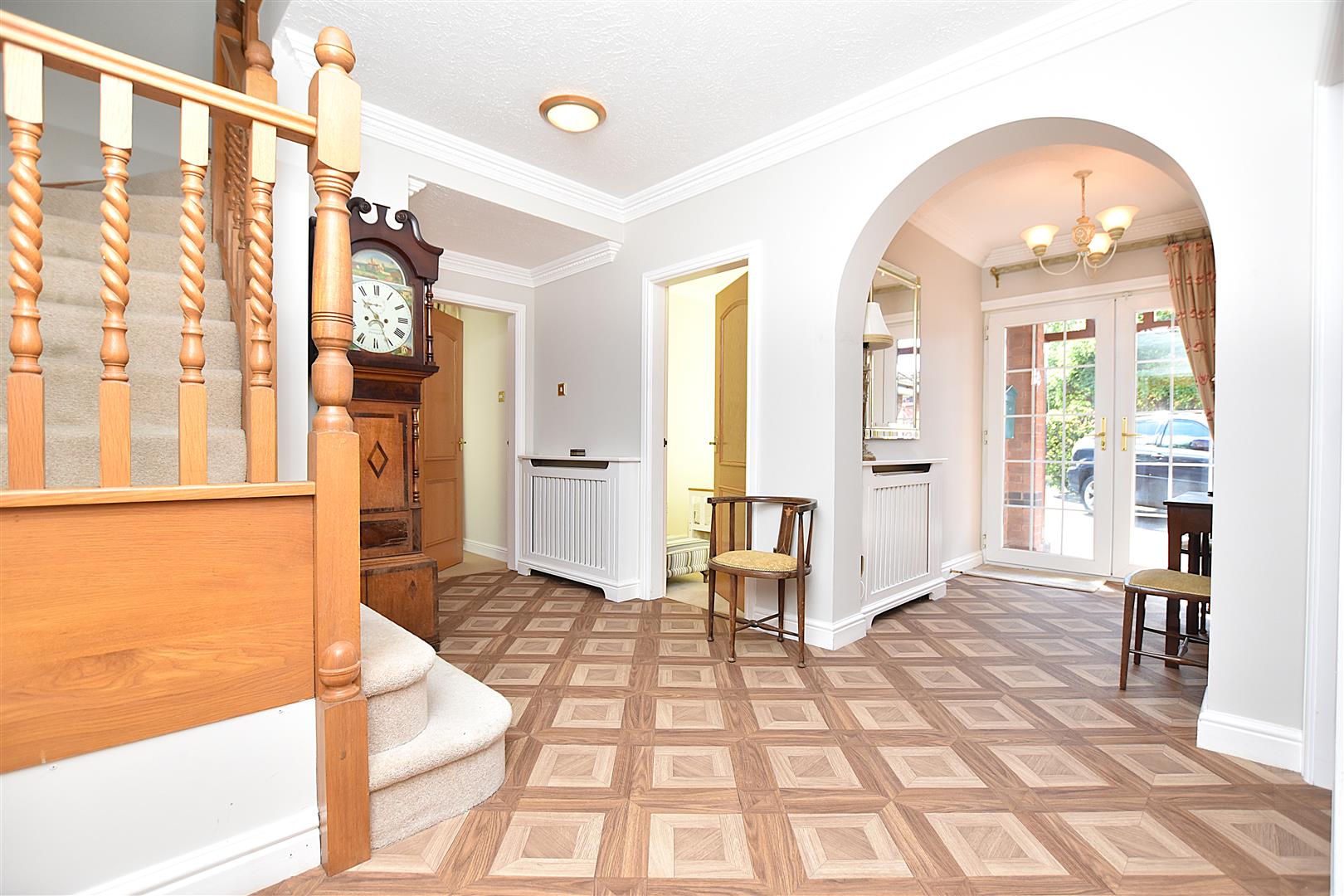 Featuring a turned staircase with spindled balustrade rising to the first floor landing with gallery over stairwell and lounge, two radiators, decorative coving, oak veneer internal doors, feature arch and useful storage cupboard.