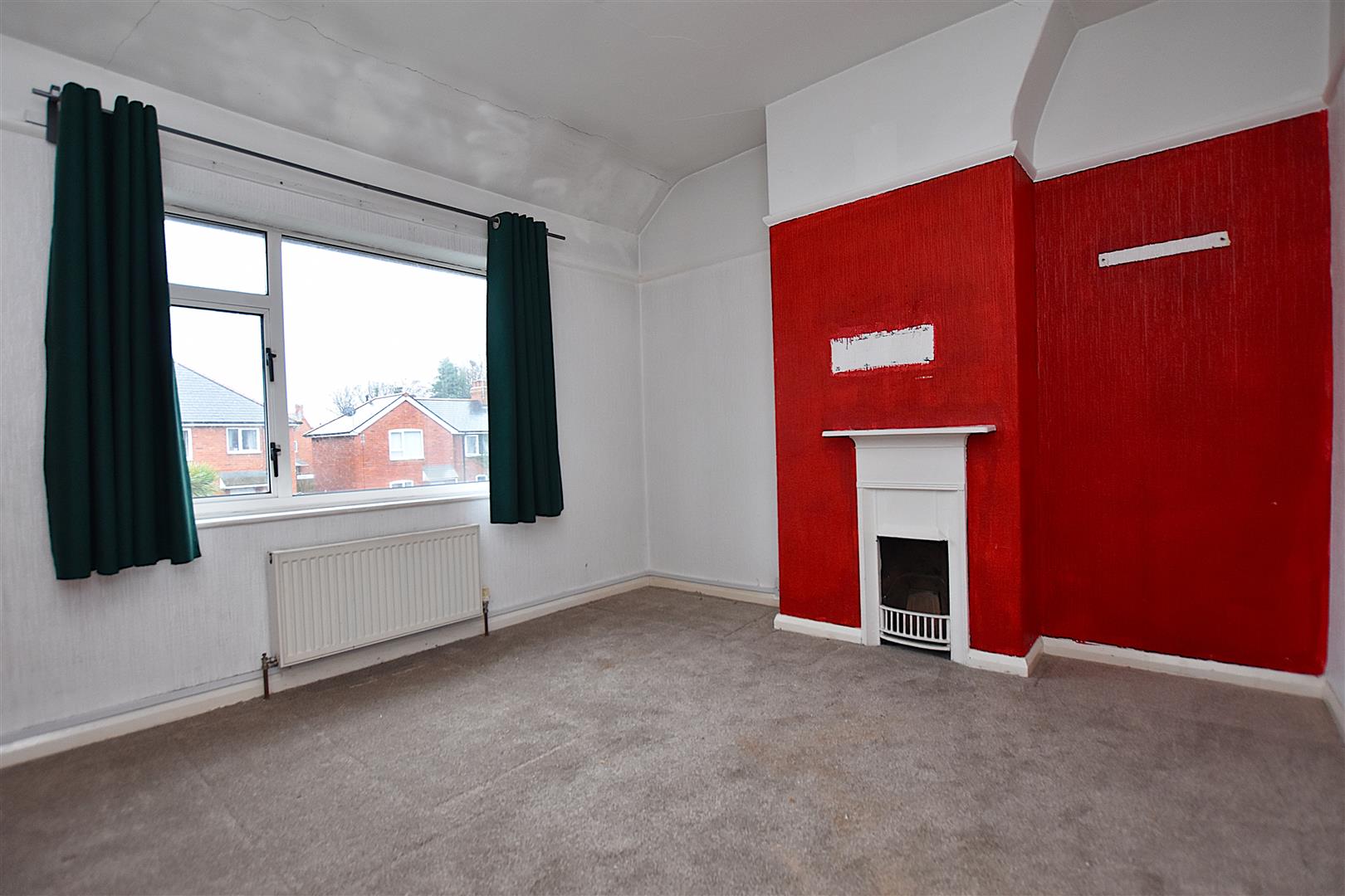 Upvc double glazed window overlooking the rear garden, radiator and feature cast iron fireplace.