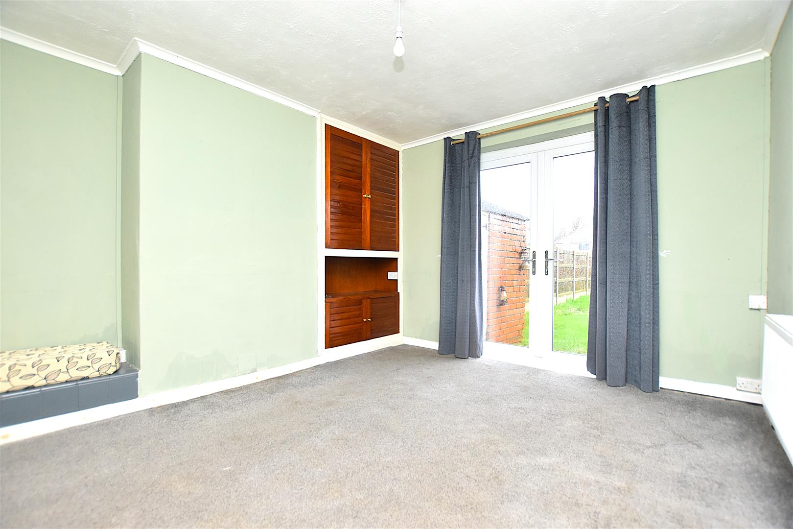 Upvc double glazed French doors leading to the rear garden, radiator and storage cupboards in recess.