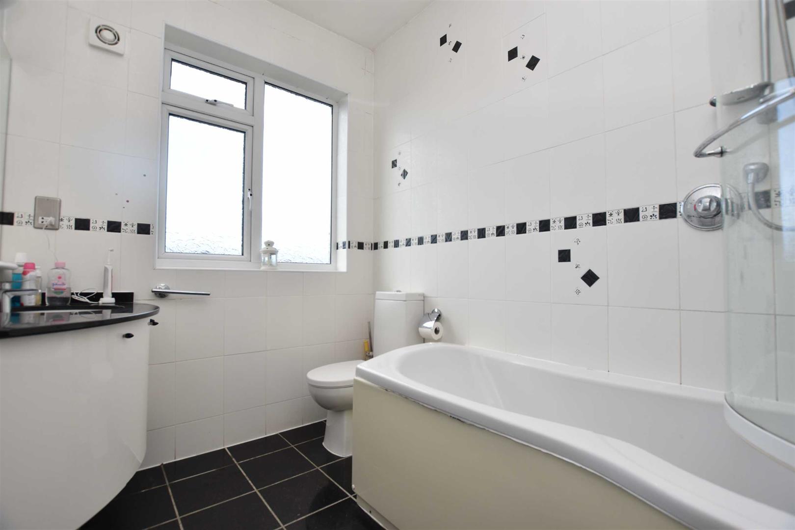 Appointed with wash basin, low coupled w.c, part tiled walls, extractor fan and tiled flooring.