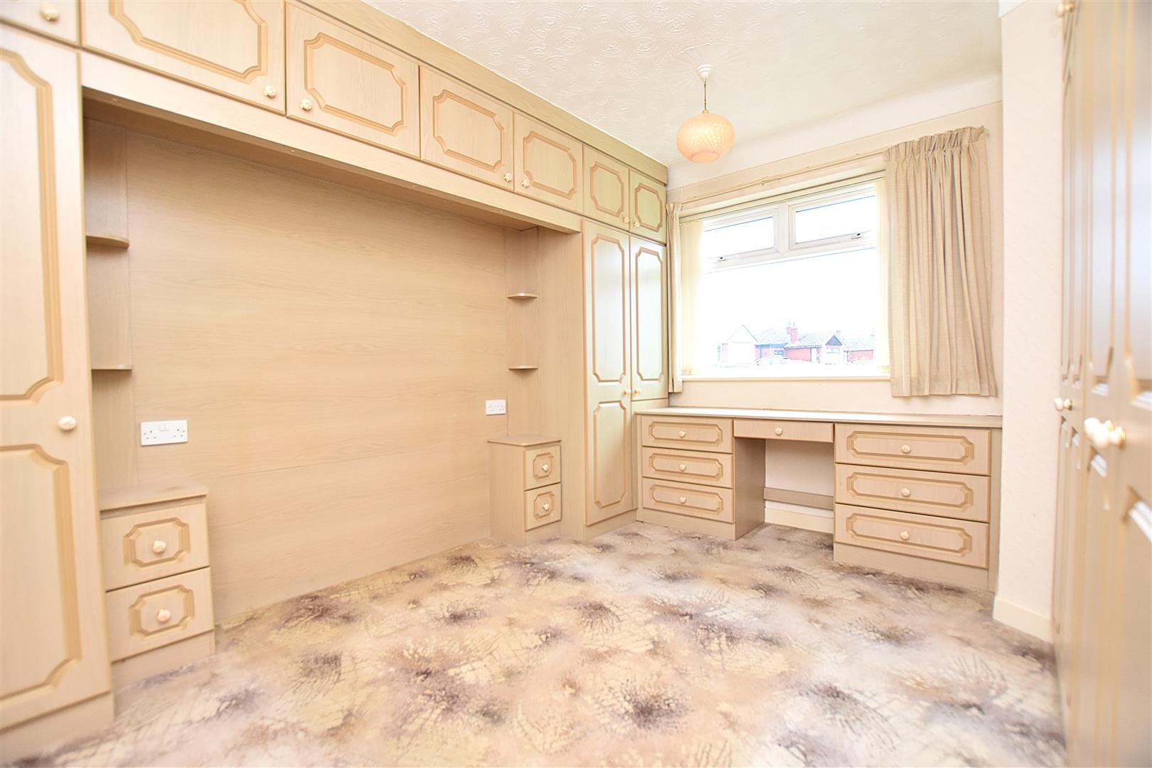 Fitted wardrobes, over bed storage cupboards, dressing table, radiator and upvc double glazed window.