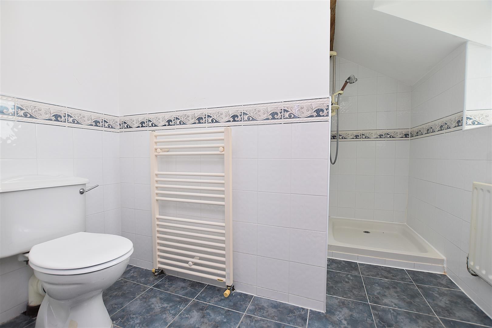 Appointed with a low flush w.c, pedestal wash basin, bath, radiator, shower enclosure with electric shower unit, upvc double glazed window, inset ceiling spotlights and radiator.