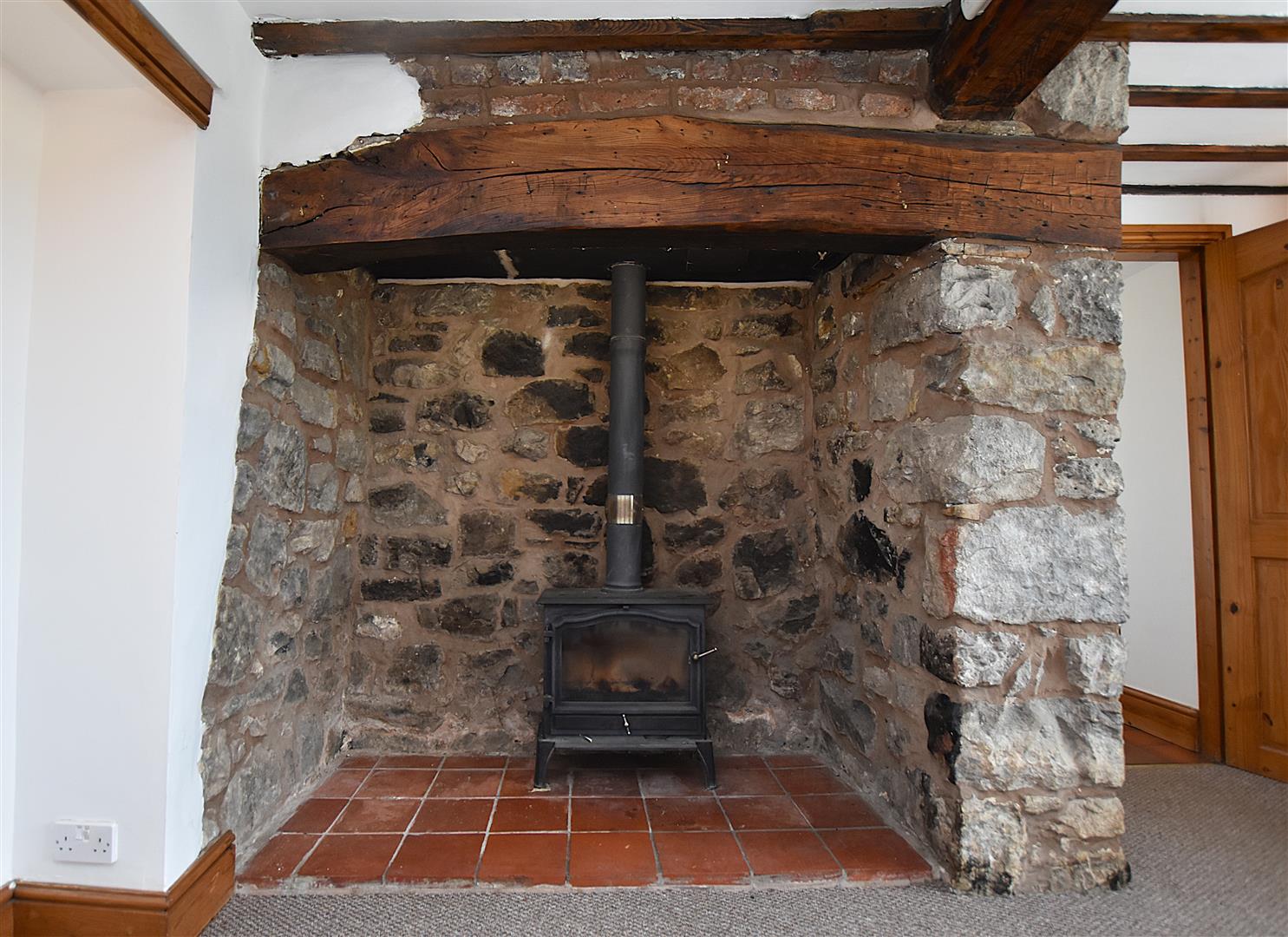 A particular feature of this reception room is the floor to ceiling stone Inglenook fireplace with heavy timber mantel and the warmth of a log burner below and a tiled hearth, beams to ceiling, radiator, upvc double glazed window from which to admire the views and illuminated recessed storage cupboard with shelving.