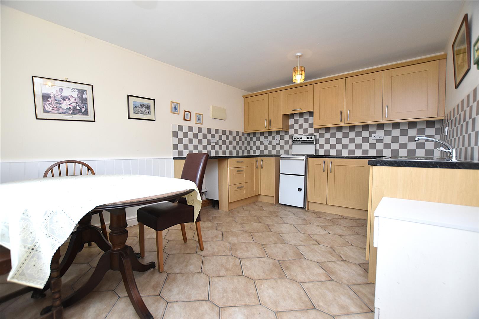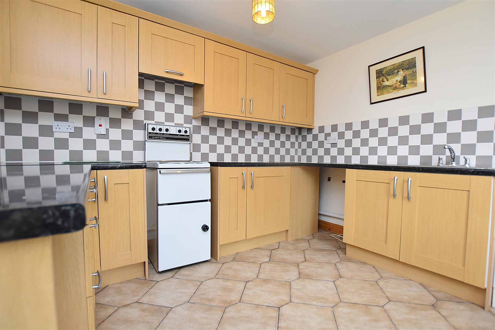 The kitchen area is fitted with a range of base and wall units with work surface areas incorporating a stainless steel single drainer sink unit, tiled flooring, plumbing for washing machine, upvc double glazed window to front and radiator.