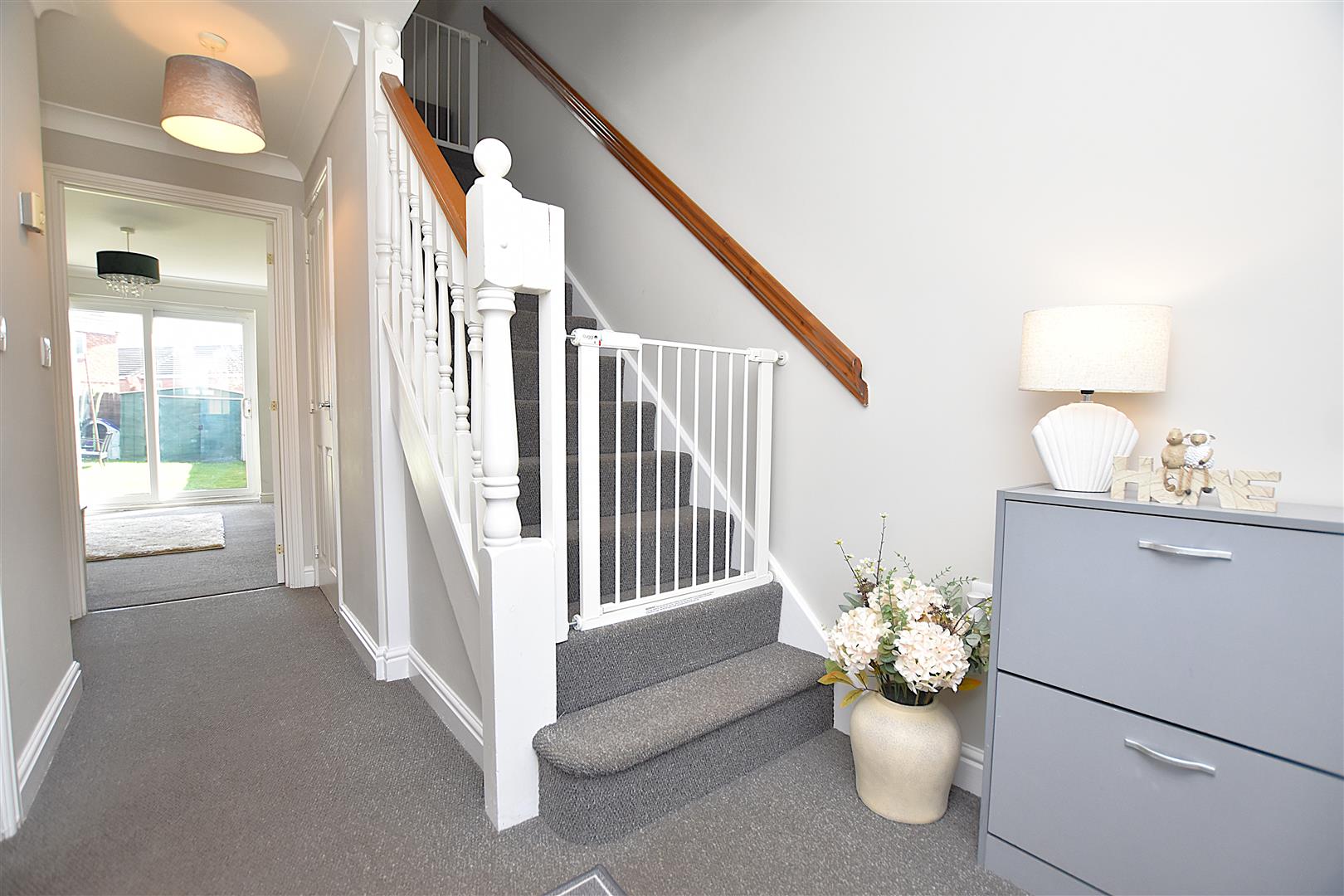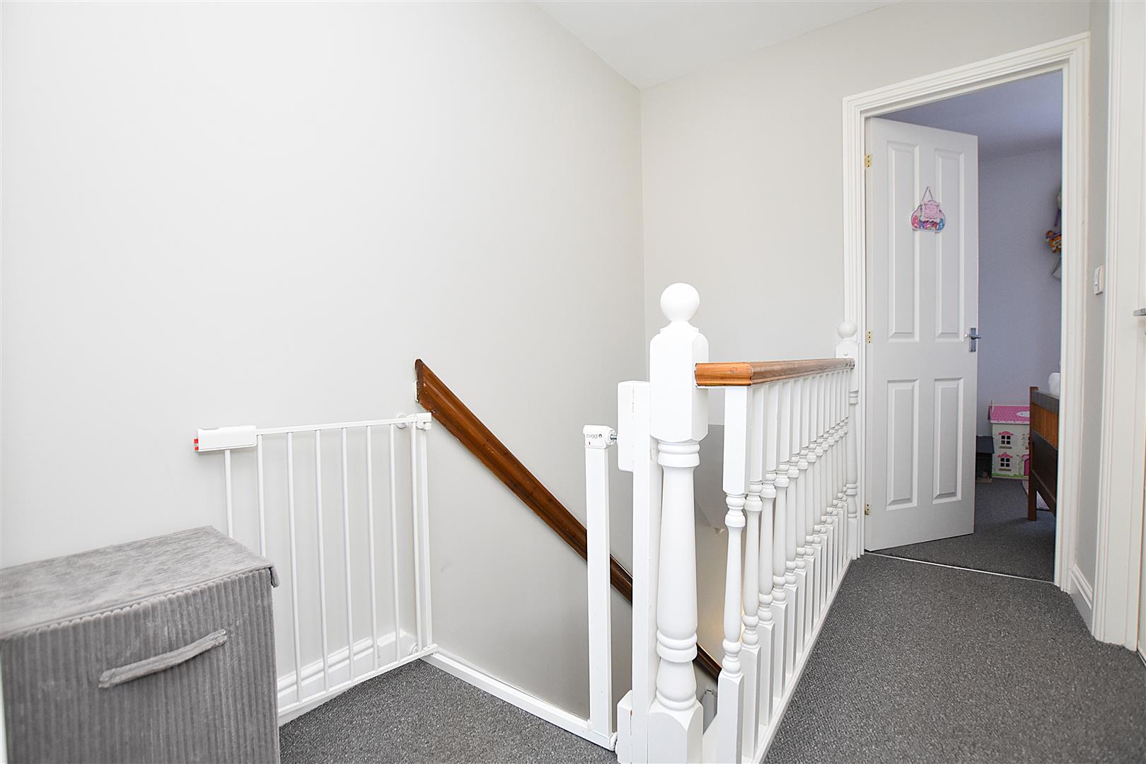 Having stairs to first floor landing with useful storage cupboard below, radiator and four panel doors off.