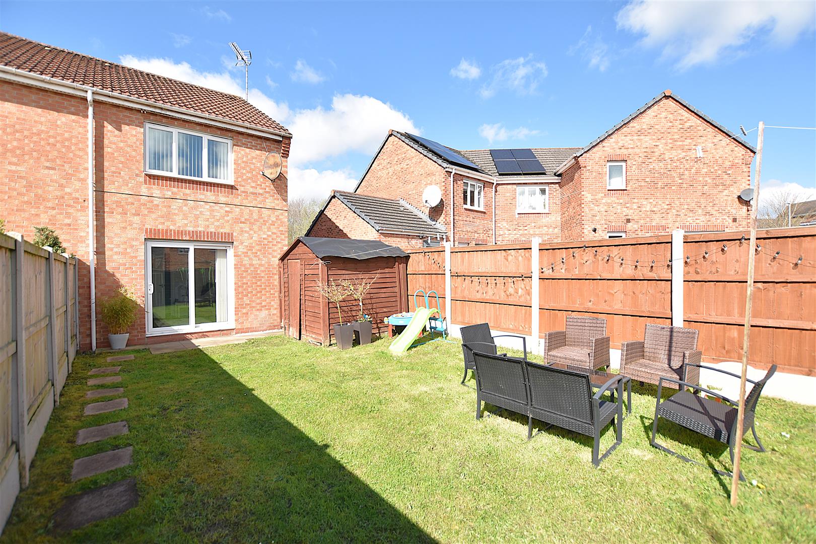 A private driveway provides parking for two cars alongside a lawned garden and path to the entrance porch. The rear garden provides a pleasant outdoor entertaining space with patio area and lawned garden beyond, side access gate and timber fencing.