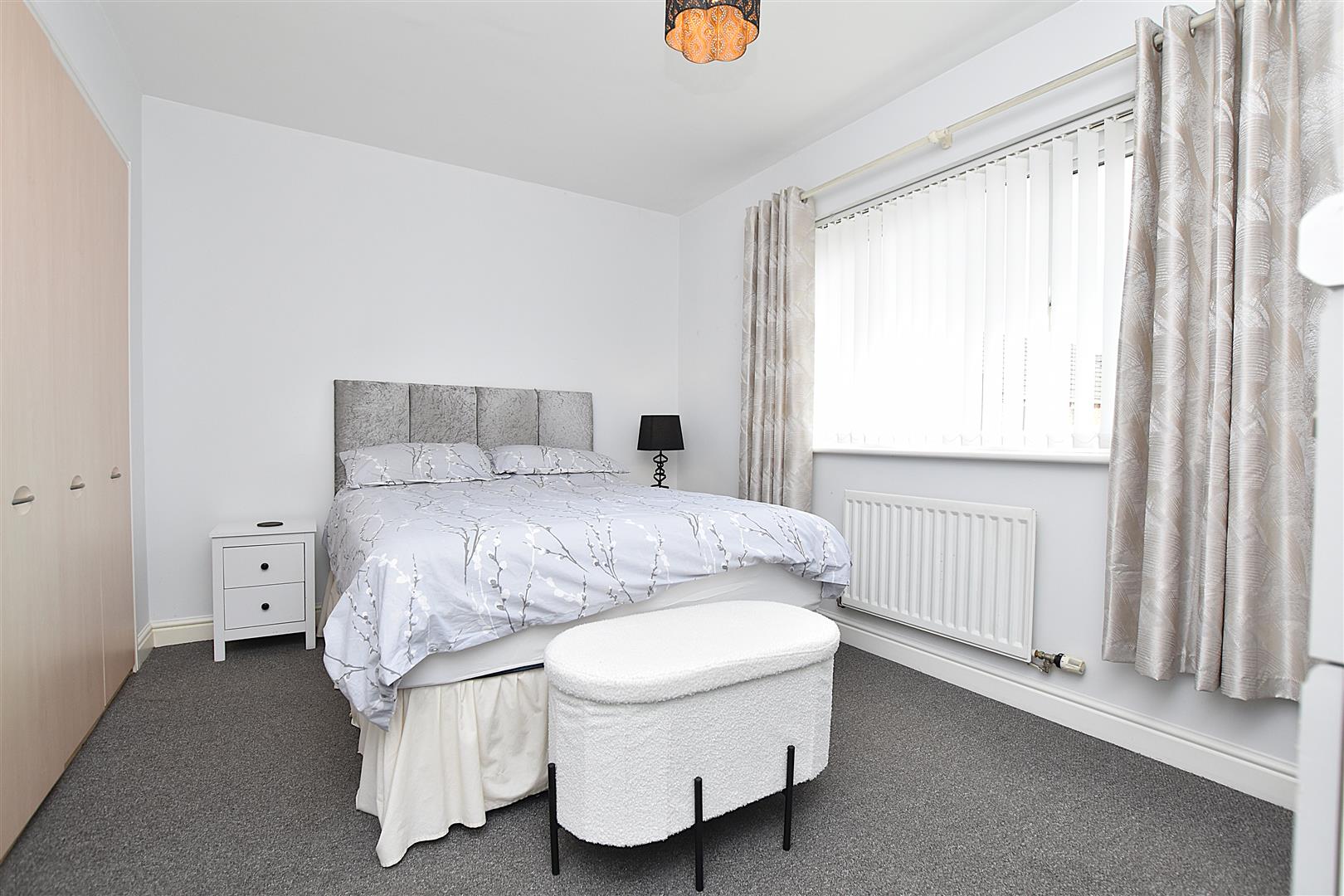 Upvc double glazed window to rear, radiator and three door built-in wardrobe providing hanging space.
