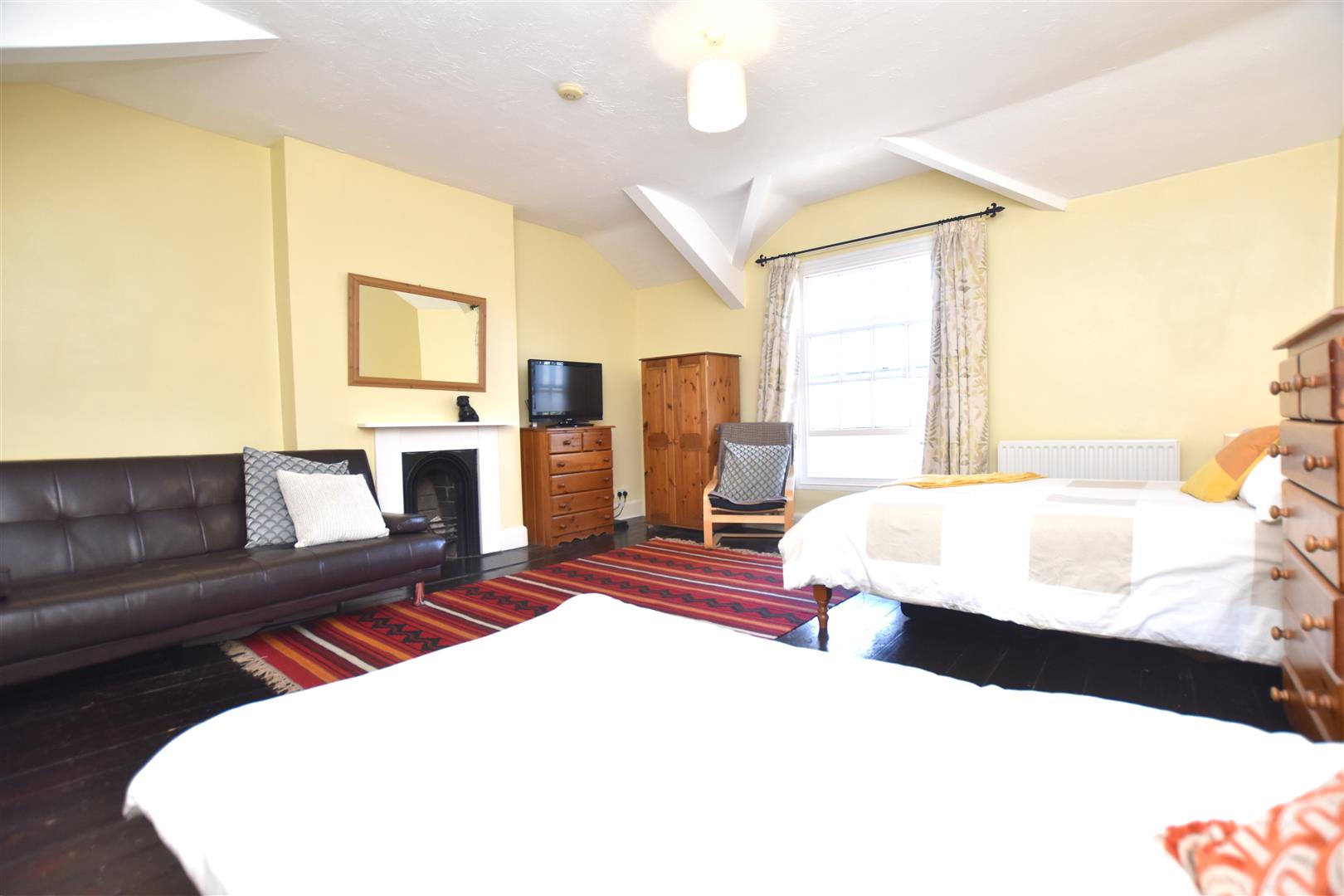 Having a dual aspect with sash windows to side and rear, exposed wood flooring, two radiators and ceiling hatch to roof space.