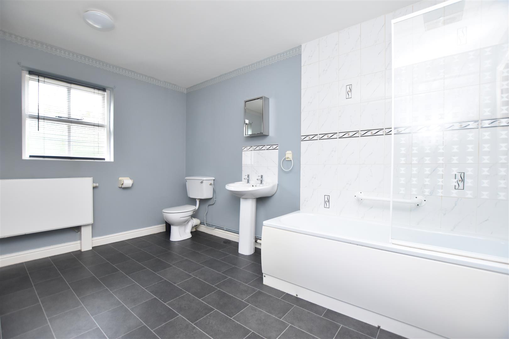 Appointed with a high flush w.c, pedestal wash basin, shower enclosure with mains thermostatic shower, fully tiled walls, radiator and sash window.