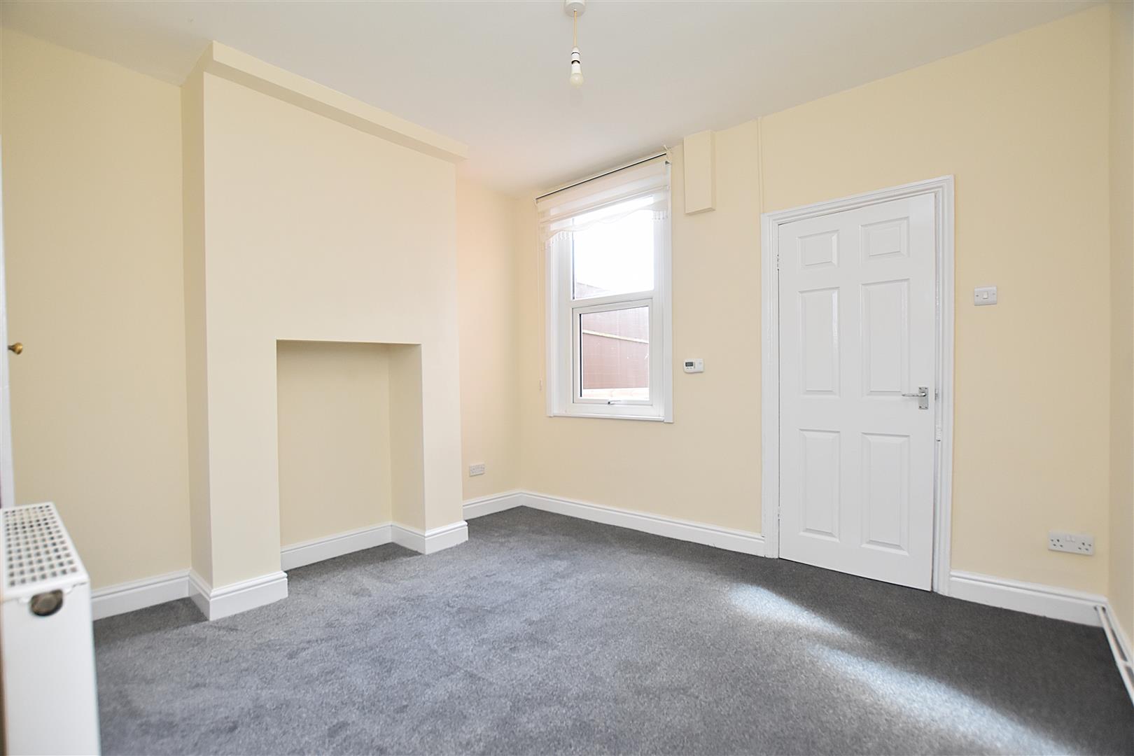 Newly fitted carpet, radiator, ornate cast iron fireplace, upvc double glazed window and built-in storage cupboard.