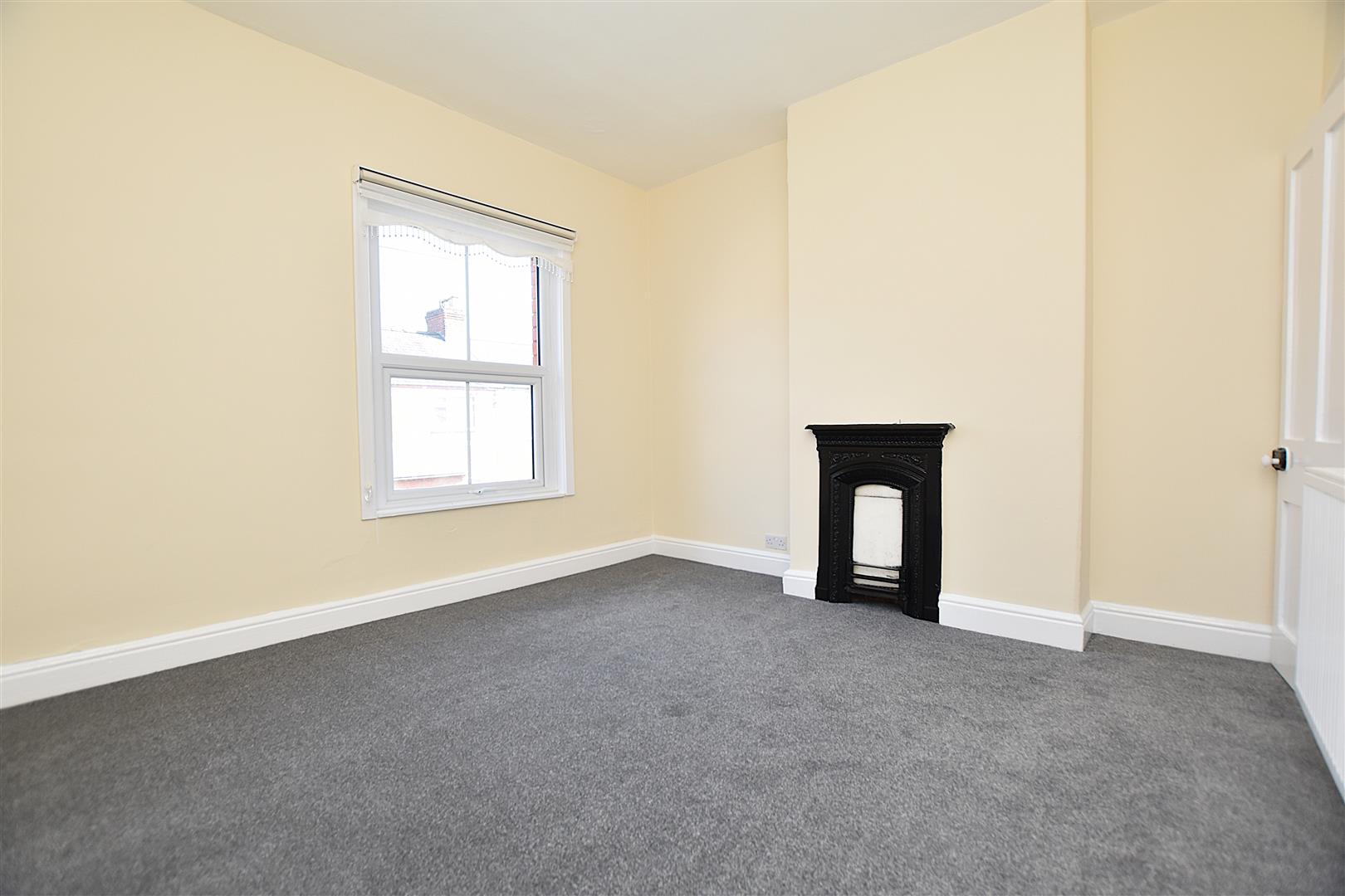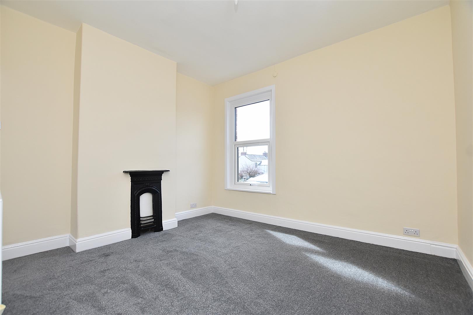 Ornate cast iron fireplace, newly fitted carpet, radiator and upvc double glazed window to front with fitted blind.