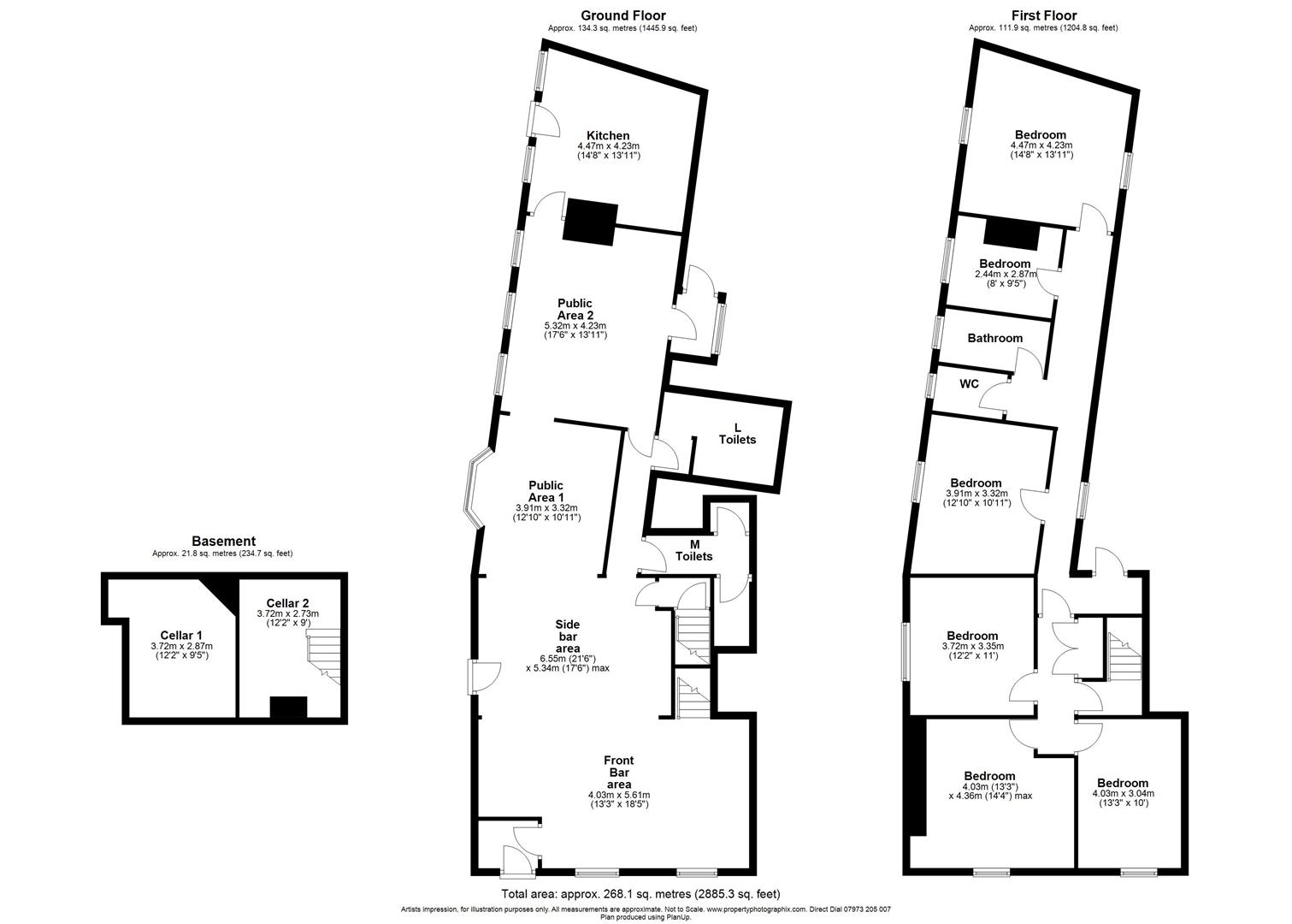 Bar and public areas, side access to courtyard, male and female w.c areas