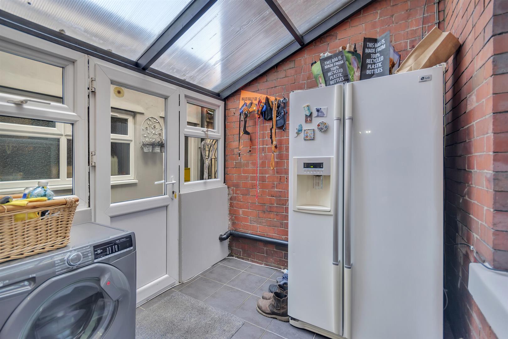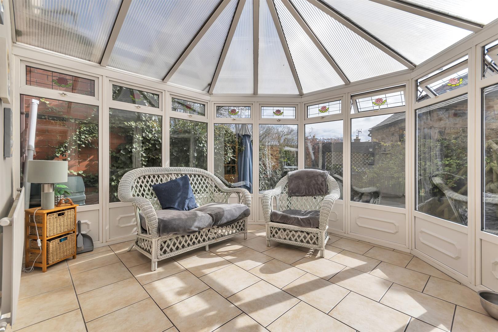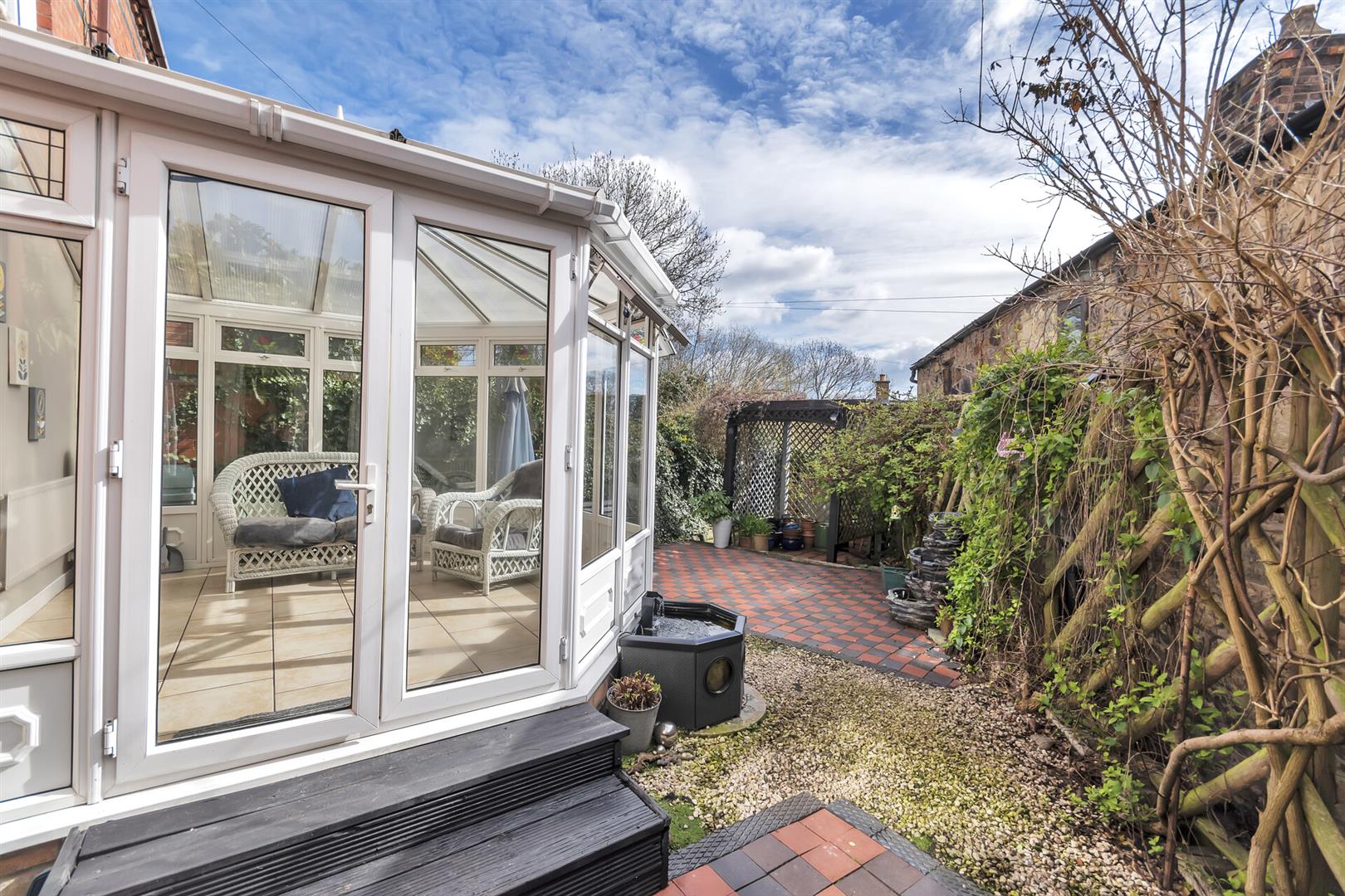 A delightful addition to the living space, featuring UPVC double-glazed windows with decorative stained glass inserts and a door leading out to the garden. The room is finished with a tiled floor and a radiator, creating a bright and comfortable area to enjoy year-round.
