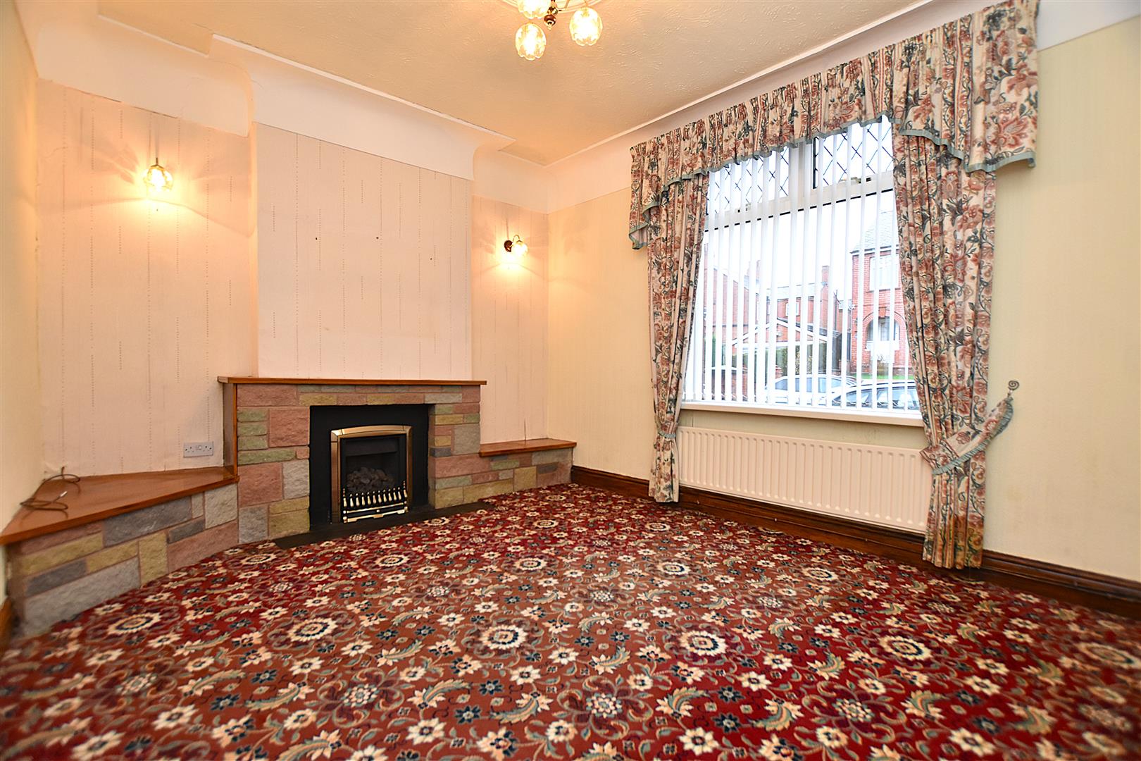 Upvc double glazed window to front, gas fire in surround, radiator, deep coving to ceiling and wall light point.