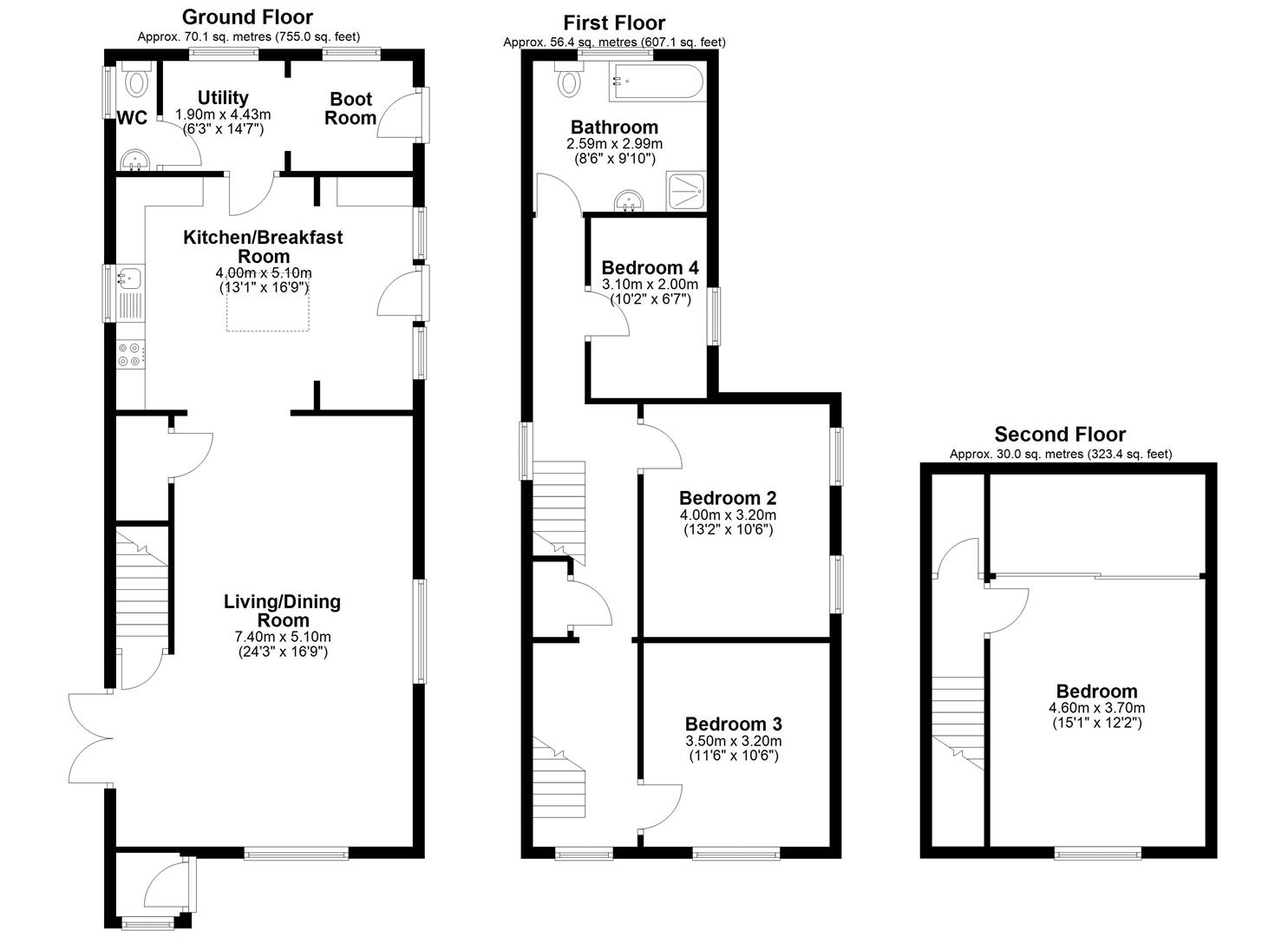 A superb opportunity to purchase this spacious and fully refurbished 4 bedroom detached family home with large gardens and plenty of parking. Situated on the fringe of the villages of Rhosllanerchrugog and Johnstown with all the convenience of their amenities, schools, public transport and excellent road links, the accommodation briefly comprises a Pvc entrance door opening to the vestibule, impressive open plan lounge and dining area with attractive oak flooring, French doors leading to the garden and useful store cupboard. Spacious and well appointed fitted kitchen breakfast room with central island and extensive granite work surface areas, utility/boot room and cloakroom/w.c. The 1st floor landing connects 3 bedrooms, 2 of which are doubles, and a beautifully appointed family bathroom with double width shower and bath. The 2nd floor landing gives access to the principal bedroom having the benefit of full width fitted wardrobes and panoramic views towards the Welsh hills. Gas fired central heating and Upvc double glazing. To the outside, a wide vehicular entrance leads to the extensive gravelled parking and guest parking area with raised flower beds. The gardens are a particular feature offering excellent outdoor entertaining space for both children and adults yet designed for low maintenance with 2 artificial lawned areas, timber decked patio for outdoor dining and relaxing, flower beds, decorative slate borders, double door store shed and 2 open fronted store areas. Energy Rating – D (62)