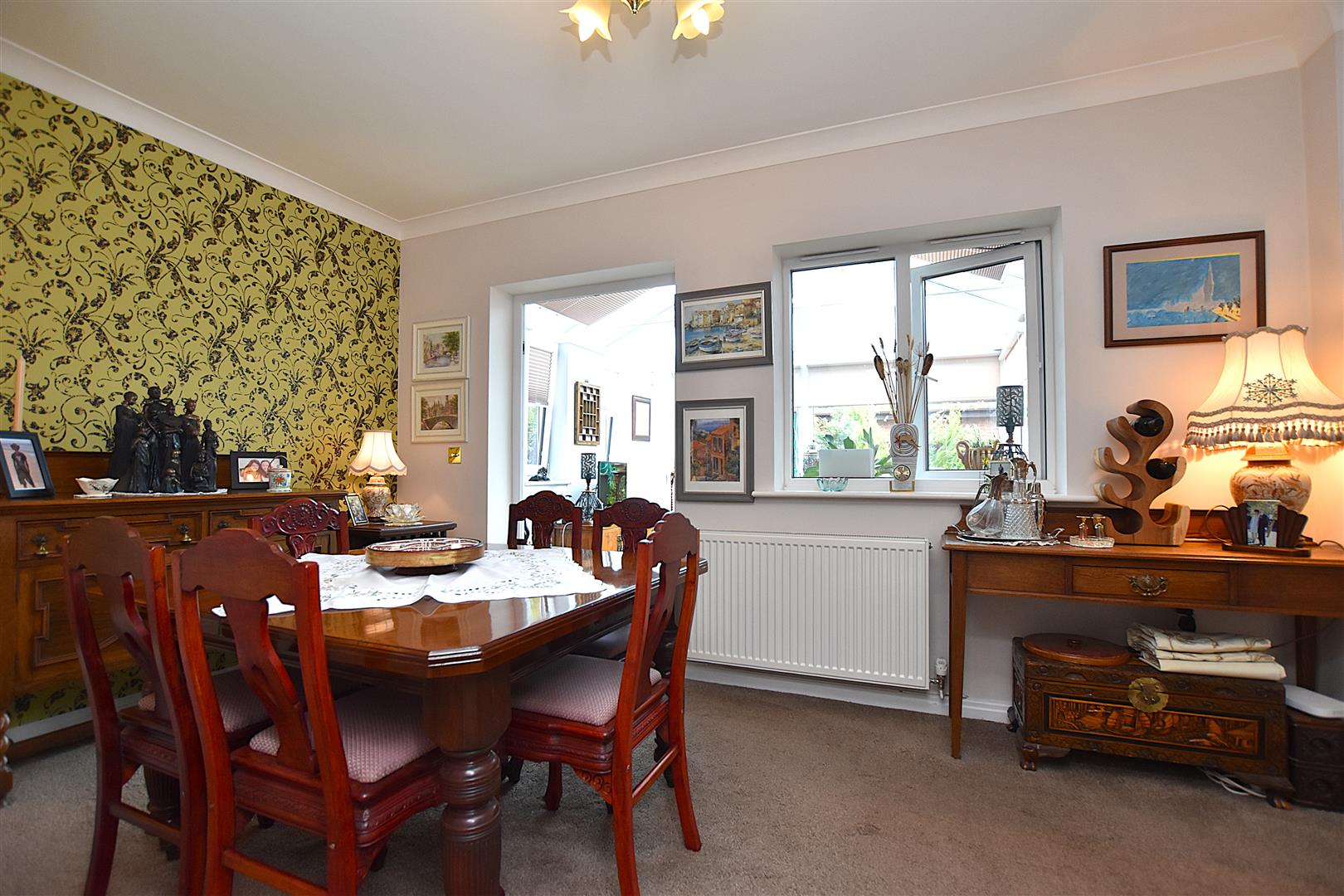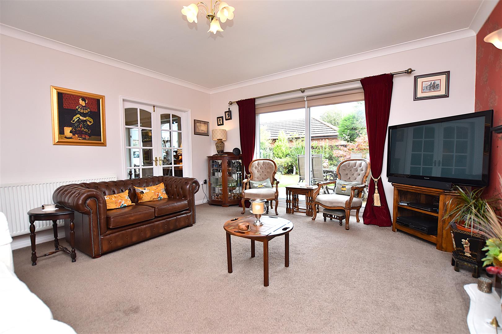 A good sized reception room featuring the warmth of a living flame gas fire in surround with marble hearth, radiator, coving to ceiling, wall light points, Upvc sliding patio doors opening to the rear garden and part glazed doors leading into the dining room.