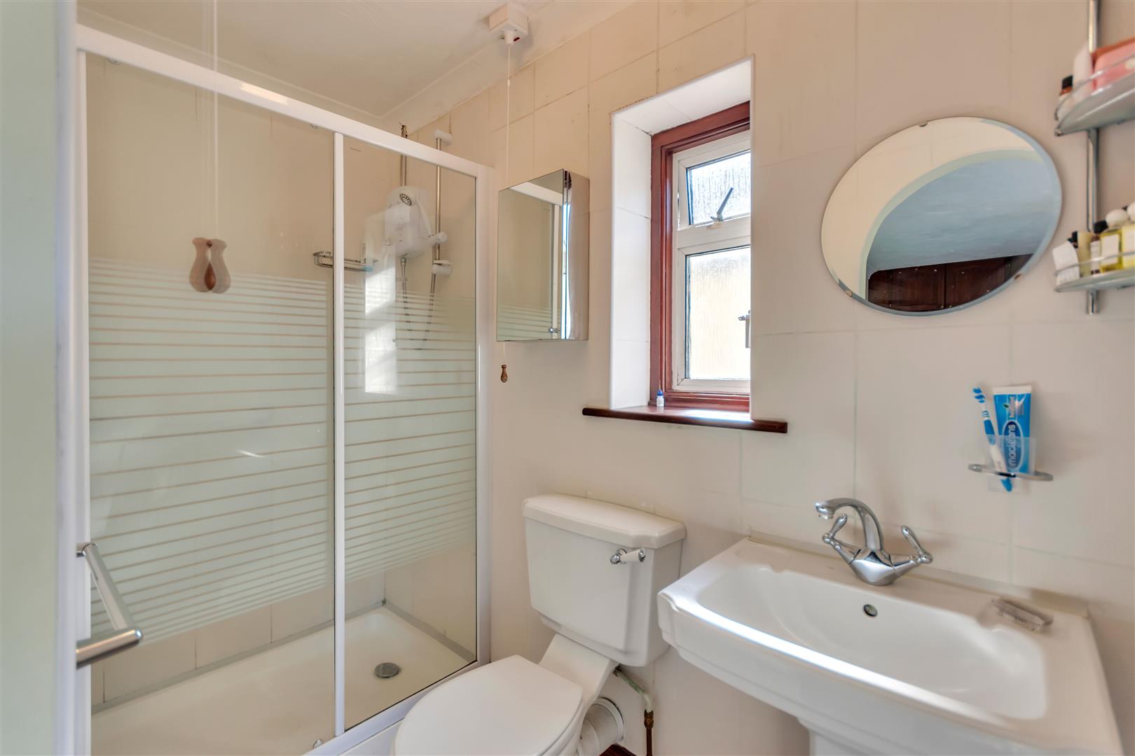 Bath, shower enclosure with electric shower, w.c, wash hand basin, window to rear, heated towel rail.