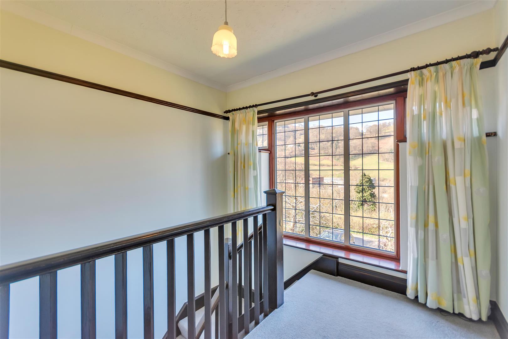 The impressive turned staircase rises from the entrance hall to the first floor landing with oversized window offering far reaching views over the valley and River Dee, ceiling hatch.