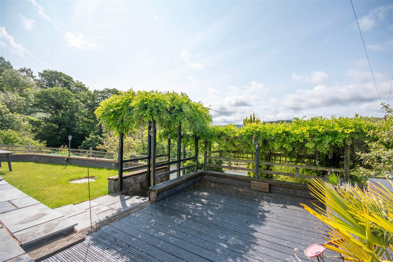 Gated access opens into the large gravelled drive overing ample off road parking and continues around to the back stable door, slate path from pedestrian entrance to rear stable door. The sunny aspect gardens are a particular feature of the house with lawn, decking and seated area, slate steps to lower garden with decking and seated pergola and established plants and fruit. Mains LED pillar, post and solar motion lights, low voltage driveway lights. Rear and front electrics and mains water tap. Large ship lap bespoke built shed/workshop, covered log store next to garage. 2,700 litre oil tank that can be economically bulk filled.
