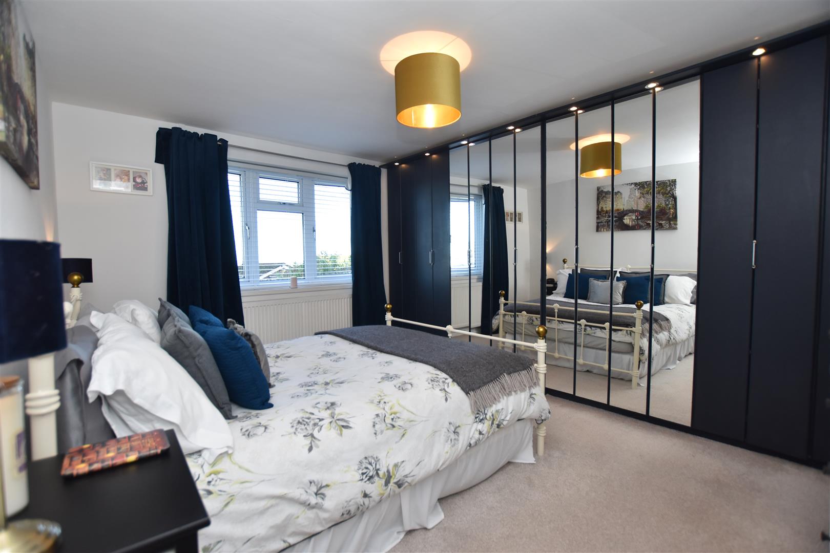 A good sized double bedroom featuring full length fitted wardrobes with pelmet lighting and central mirrors, upvc double glazed window to front from which to admire the far reaching views, radiator and neutral carpet.