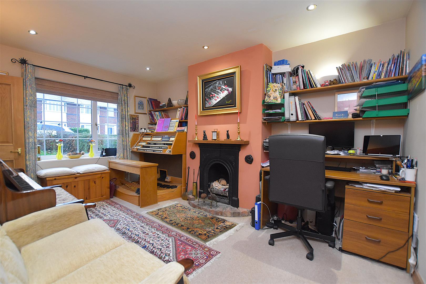 Another double bedroom with upvc double glazed window, radiator, ceiling hatch to roof space, built-in storage cupboard and cast iron ornate fireplace.